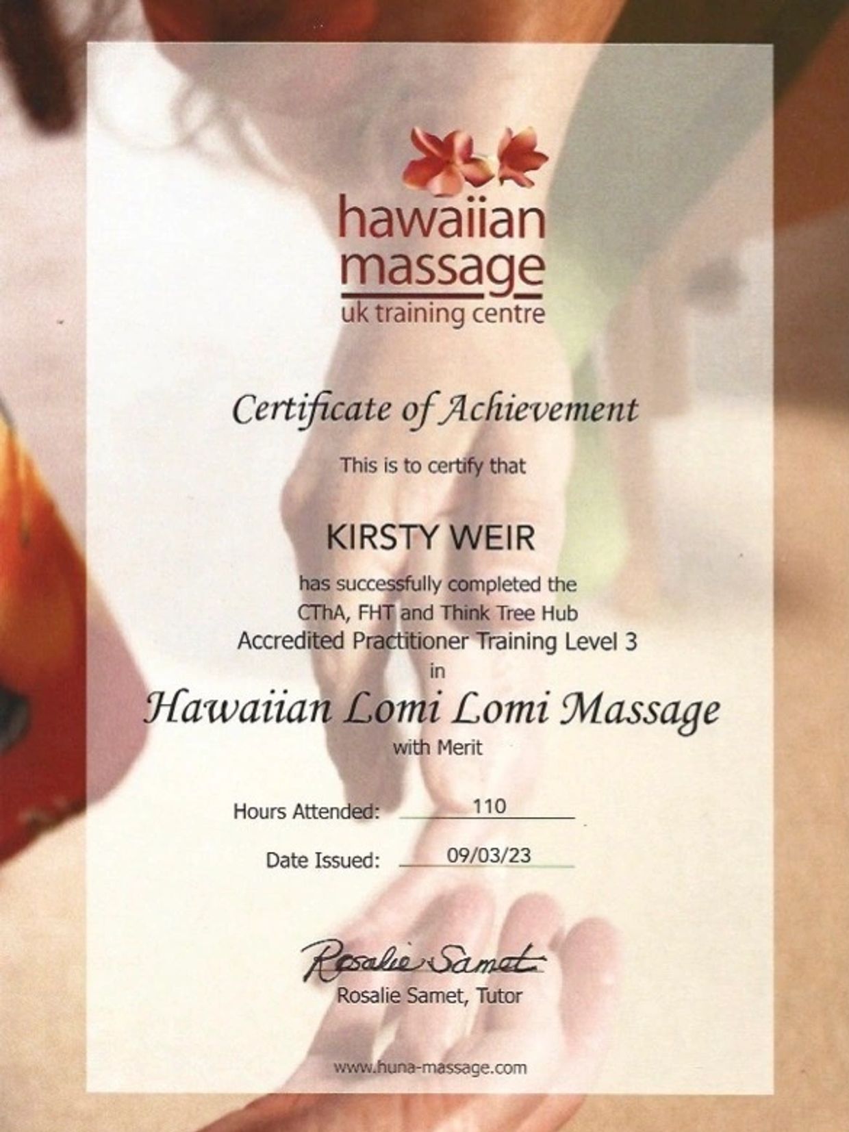 Today Hawaiian Massage is a dynamic synergy of the best of Lomi Lomi and Kahuna Bodywork. It is usually given however without the use of applications as these tend to require separate and specialist training. True to its purpose, it recaptures the forgotten wisdom of Aloha that was so vital the ancient people of Hawaii. Creating States of inner peace, balance and wholeness it blissfully transcends the stresses and strains of modern living that were not present in the old days. Lomi Lomi offers renewal and hope for a positive future.